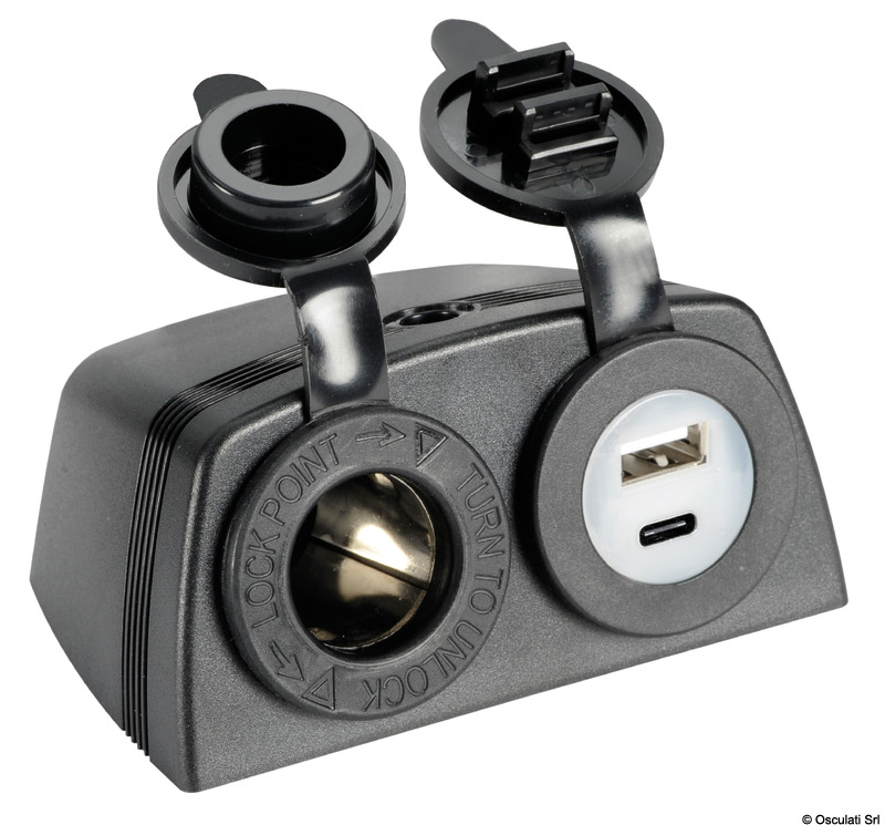 Lighter + USB-A + USB-C socket with housing